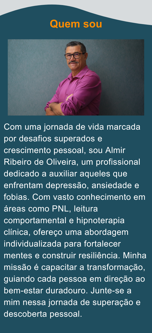 Aprenda a gerenciar a ansiedade e viva uma vida mais tranquila e equilibrada com a Terapia de Programação Neurolinguística (PNL). Desenvolva ferramentas eficazes para controlar pensamentos ansiosos e tomar o controle de suas emoções. Reserve sua consulta e comece a construir uma mente mais calma e serena.